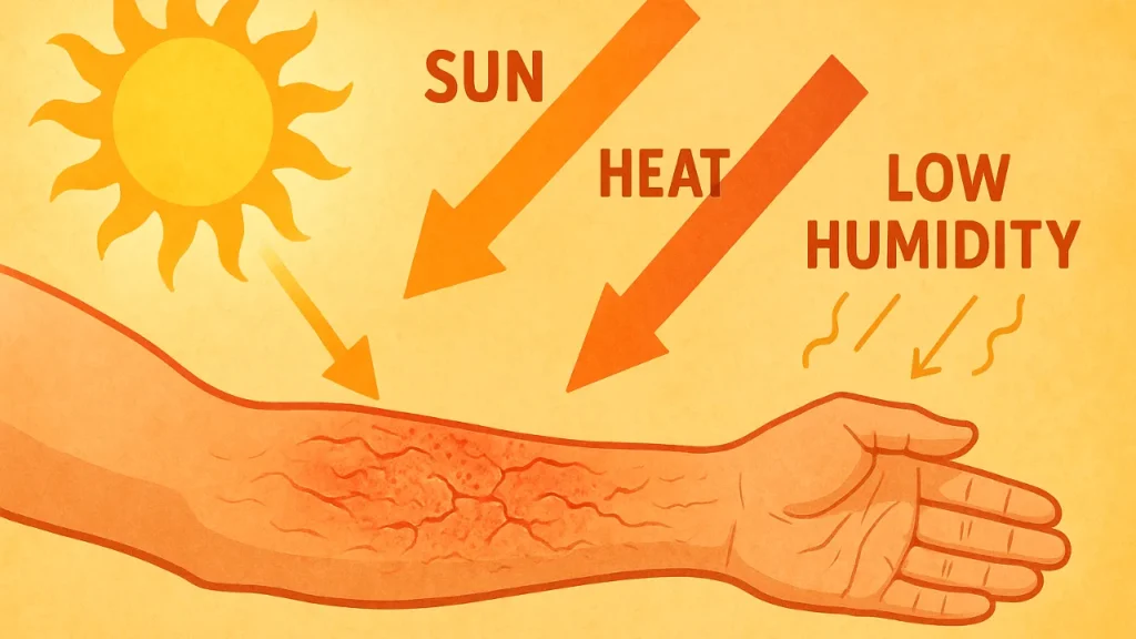 The dry air of Telangana causes a marked increase in transepidermal water loss (TEWL), wherein moisture escapes from the surface of the skin.