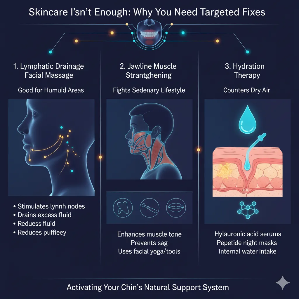 To effectively combat chin fat and manage jawline sag, one must adopt a climate-conscious, holistic approach. This includes mindful lifestyle choices, targeted skincare aligned with humidity or dryness, and even non-invasive clinical treatments where necessary.