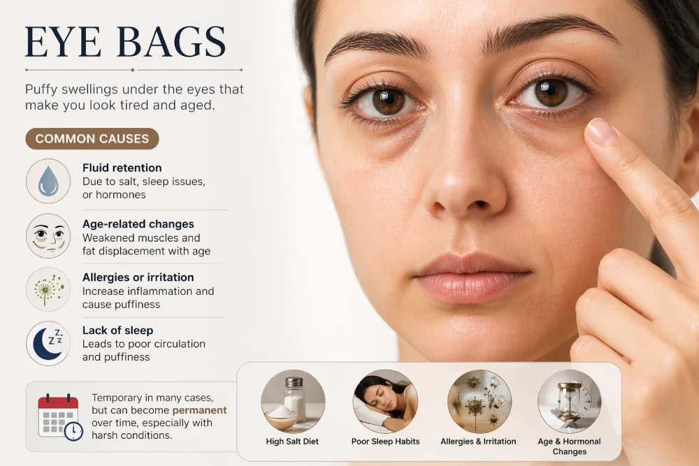 Day in and day out, this causes permanent under-eye bags which lose easy amenability to treatment except for medical procedures.