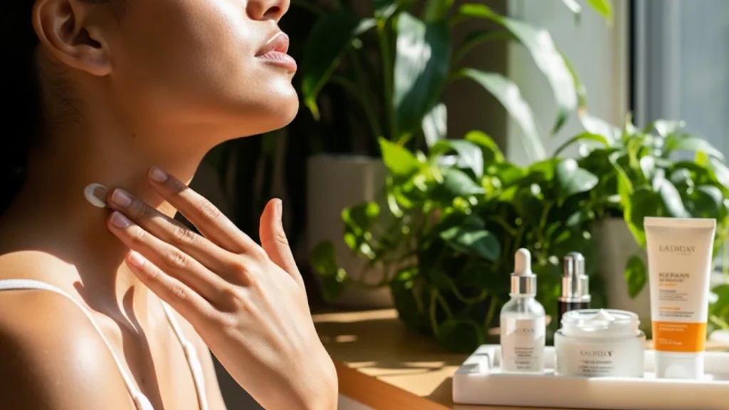 Apply sunscreen on the neck and jawline every morning, even when indoors or during cloudy days.